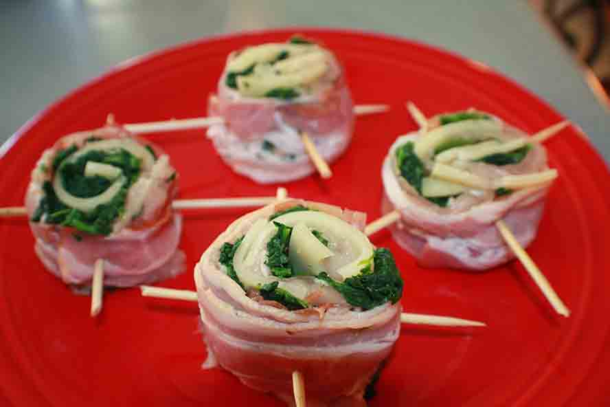 - Top the ham with the spinach and parmesan blend.